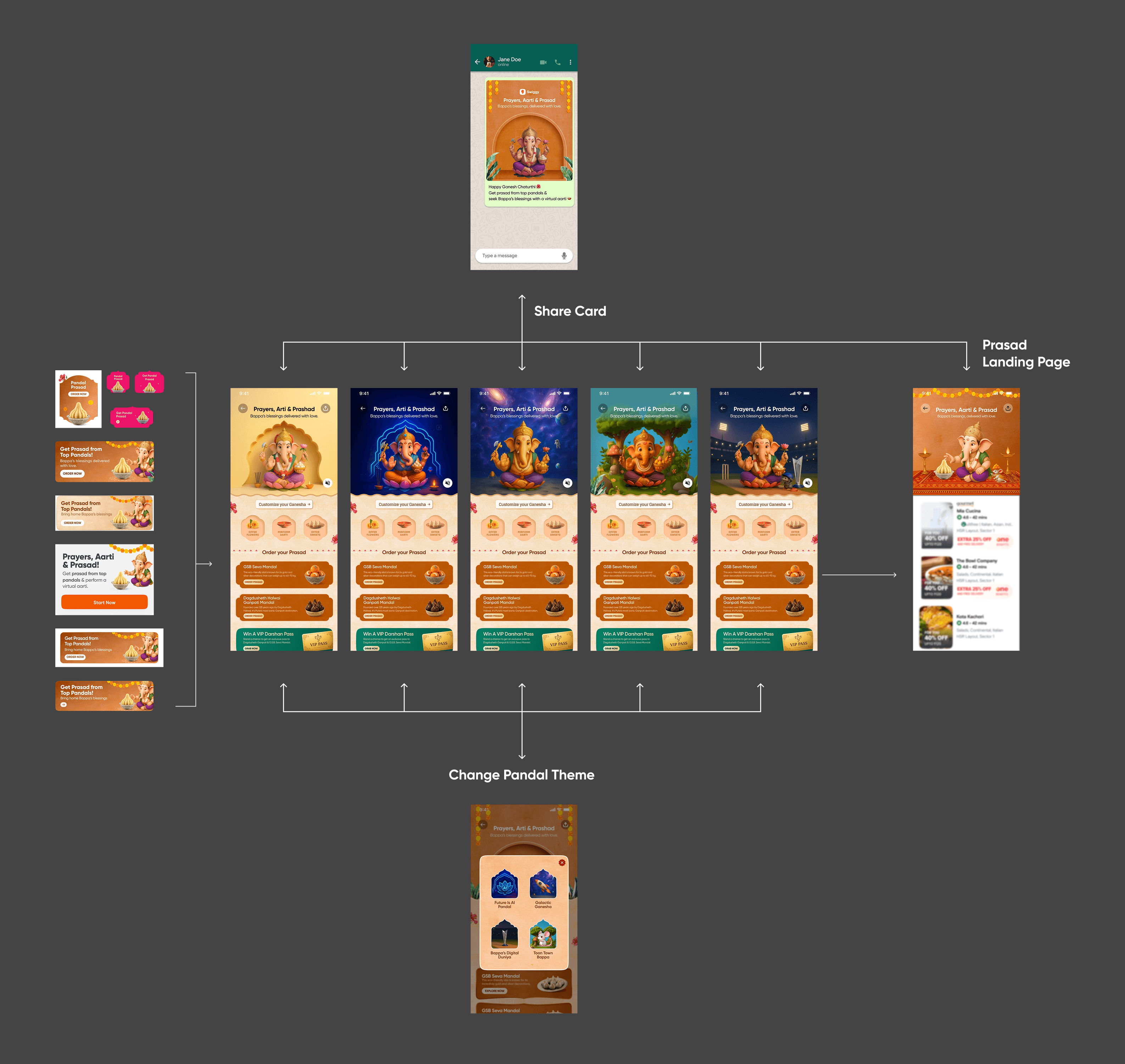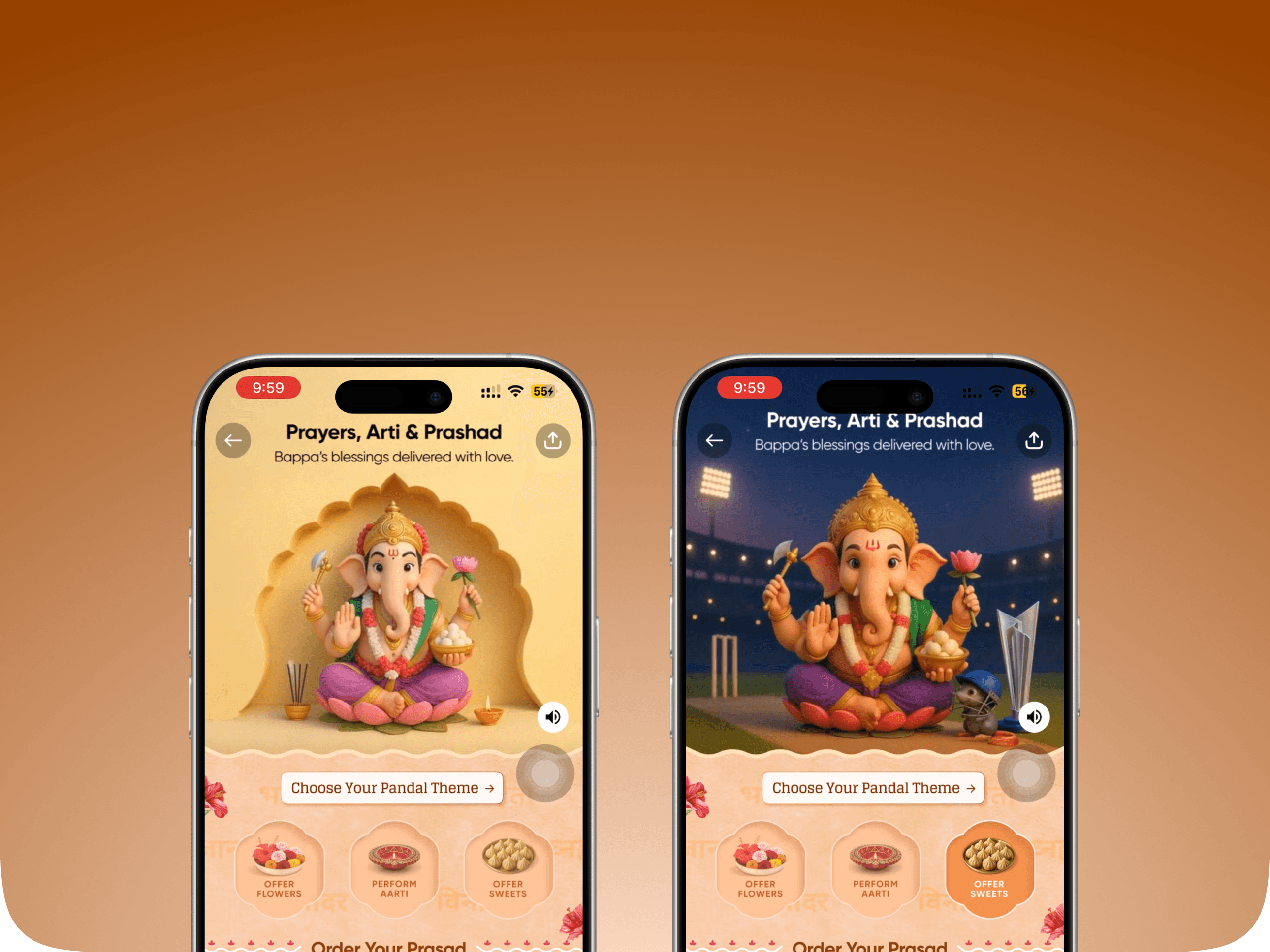 Ganesh Chaturthi is a ritual-driven festival with high emotional significance. The challenge was to translate this moment into a mobile experience that felt meaningful, while remaining lightweight, optional, and non-disruptive within a high-velocity consumer app.